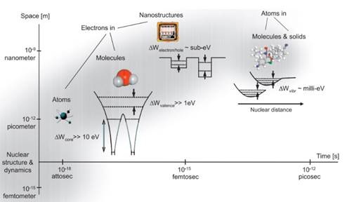 图 1不同时空尺度下微观粒子的结构和动力学特征
